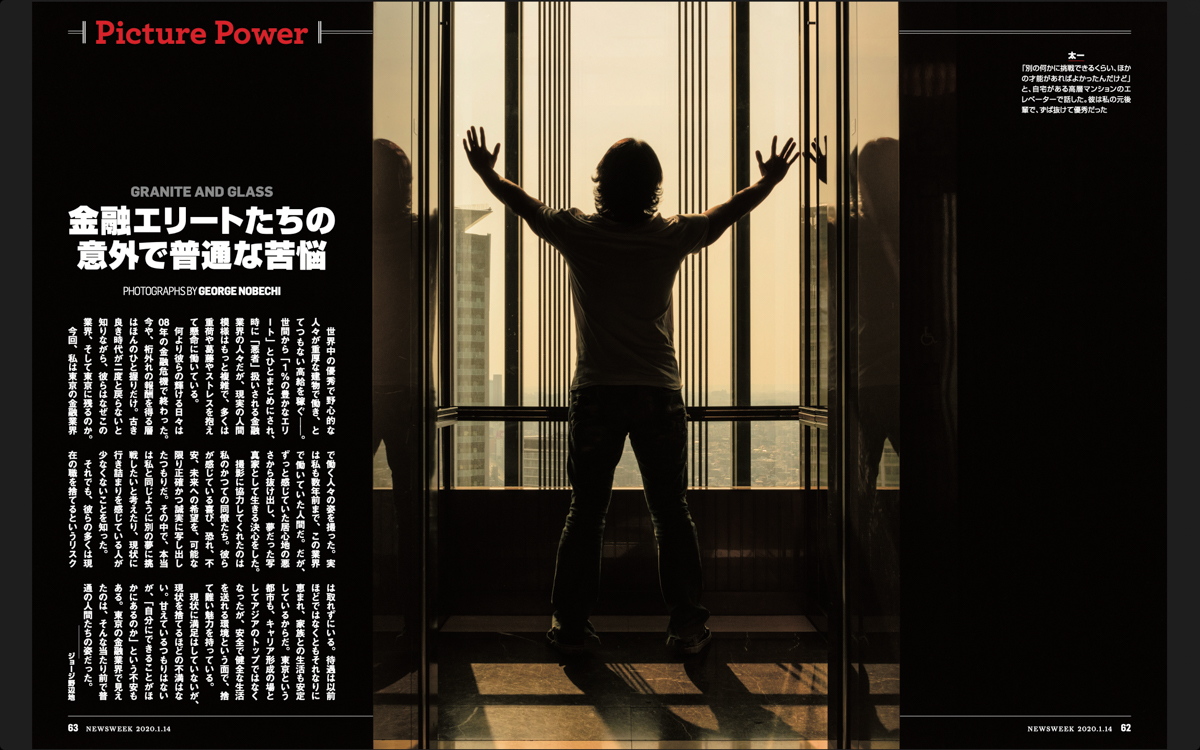 Inside monoliths of steel, glass and stone, men and women from all over the world come to work in the financial industry. They were sold dreams of fortune and came to seek a good career or to support their families, but the glory days are long gone, perhaps never to return. Misunderstood by others, shrouded in mystery, painted with the broad brush of the “1%” despite their very different reality. Each of these men and women carries a burden and an inner conflict about the meaning in their lives. This portrait series is an insider’s look at their troubled world.