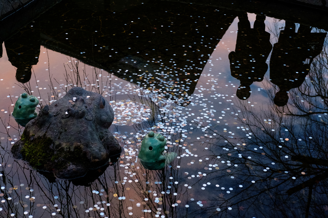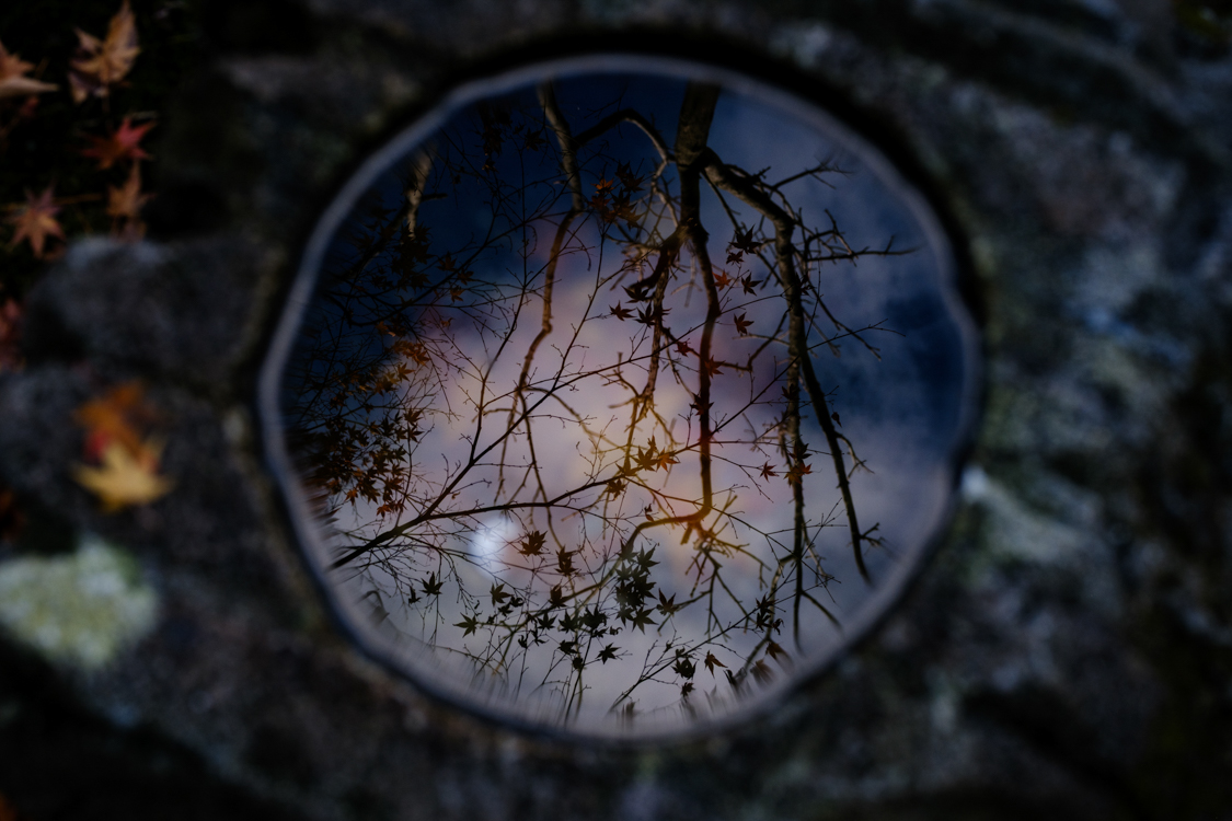 In this series, I make photographs when I feel a sense of otherworldliness from the scenes that I encounter: a cherry blossom billboard is a portal to another world, a coin in a basin becomes the moon, a maple tree becomes the Milky Way Galaxy.